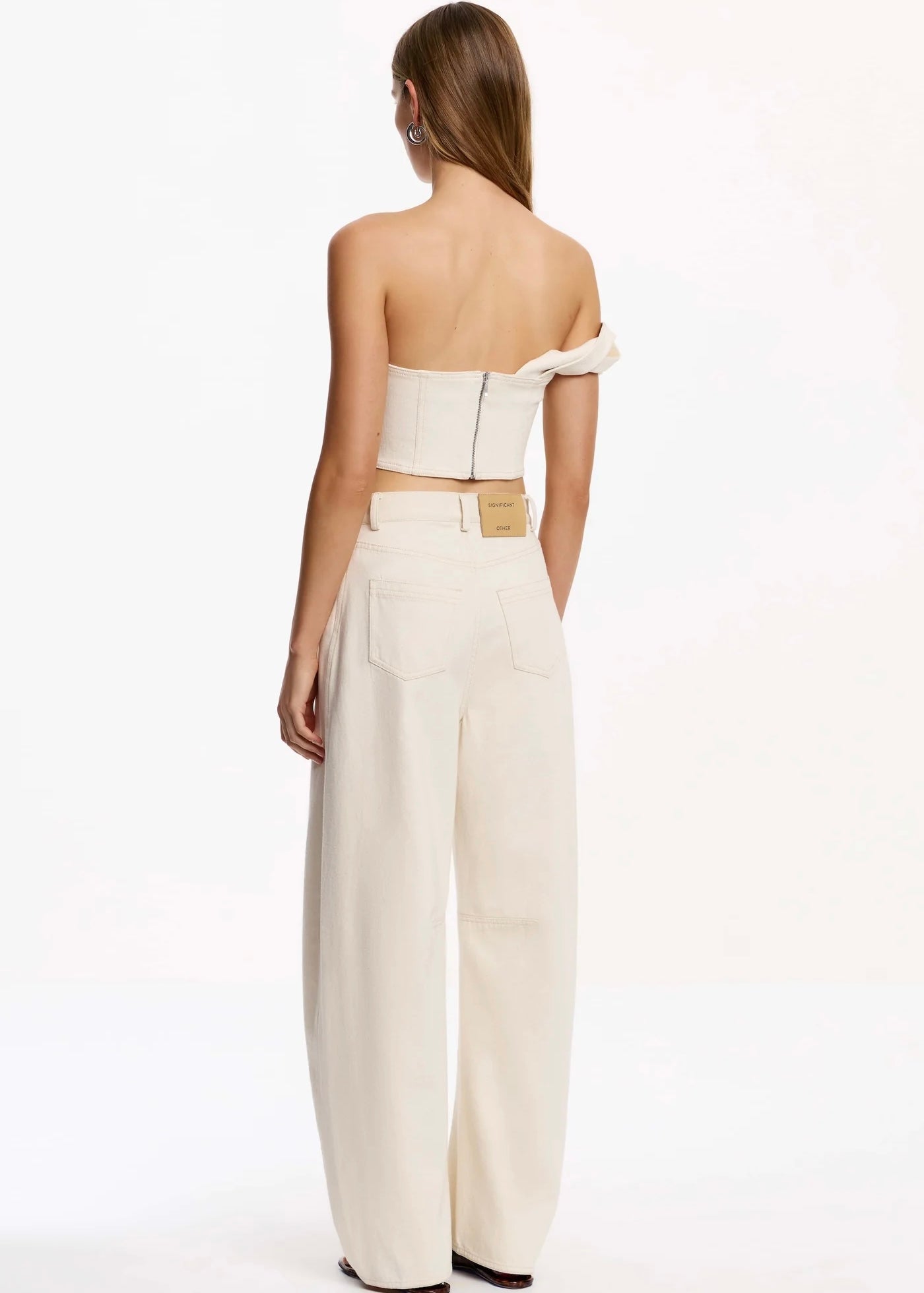 The Flori Jeans deliver a fresh take on denim essentials. Their distinctive barrel silhouette features twisted side seams that shift toward the front, creating a modern, sculptural silhouette that stands out from standard cuts. With classic five-pocket styling and a center front zipper, these jeans blend architectural design with everyday wearability—perfect for effortless, refined looks that work across any occasion