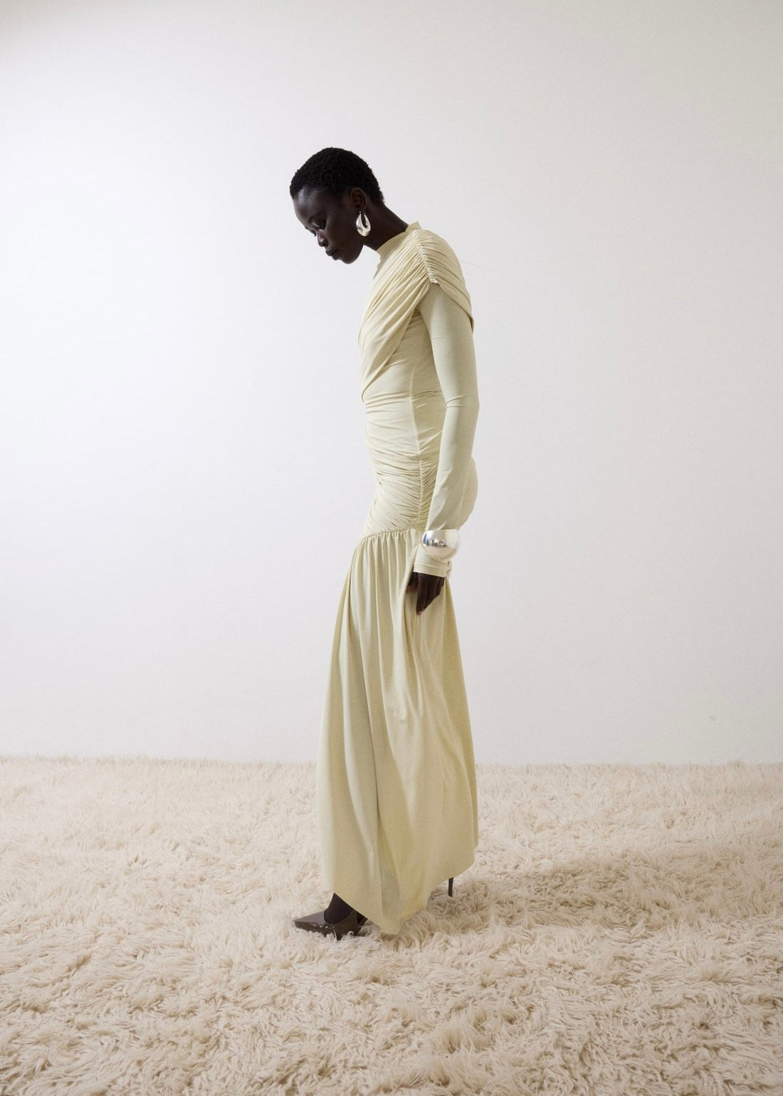 Elevate your wardrobe with the Ravel Mini Dress! This stunning piece features a soft, jersey-like material in a chic sand color, perfect for any occasion. The long fitted sleeves and gathered skirt create a flattering silhouette, while the cross-body sash adds a touch of elegance. Experience style that inspires confidence!