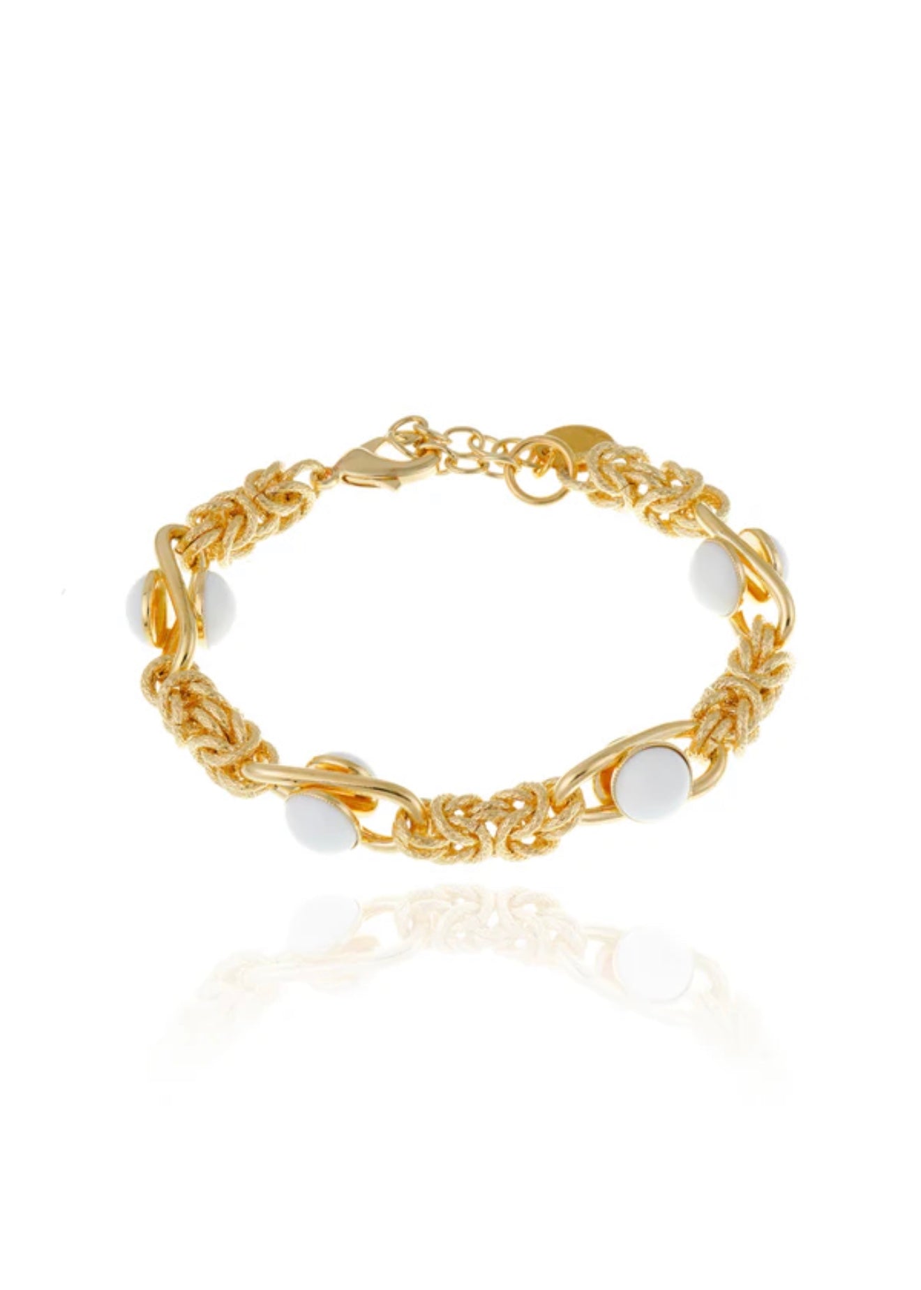 The Lizansa Bracelet is where Italian craftsmanship meets pure magic—think of it as your wrist's new best friend. Those gorgeous rope-textured links, bathed in shimmering 18K gold plating, dance around smooth white or green agate stones like they're having the time of their lives. It's the kind of piece that whispers sophistication without demanding attention, effortlessly transitioning from your morning coffee run to evening plans. Organic, architectural, and undeniably chic—this bracelet proves that sometimes the most refined accessories are the ones that feel like second nature