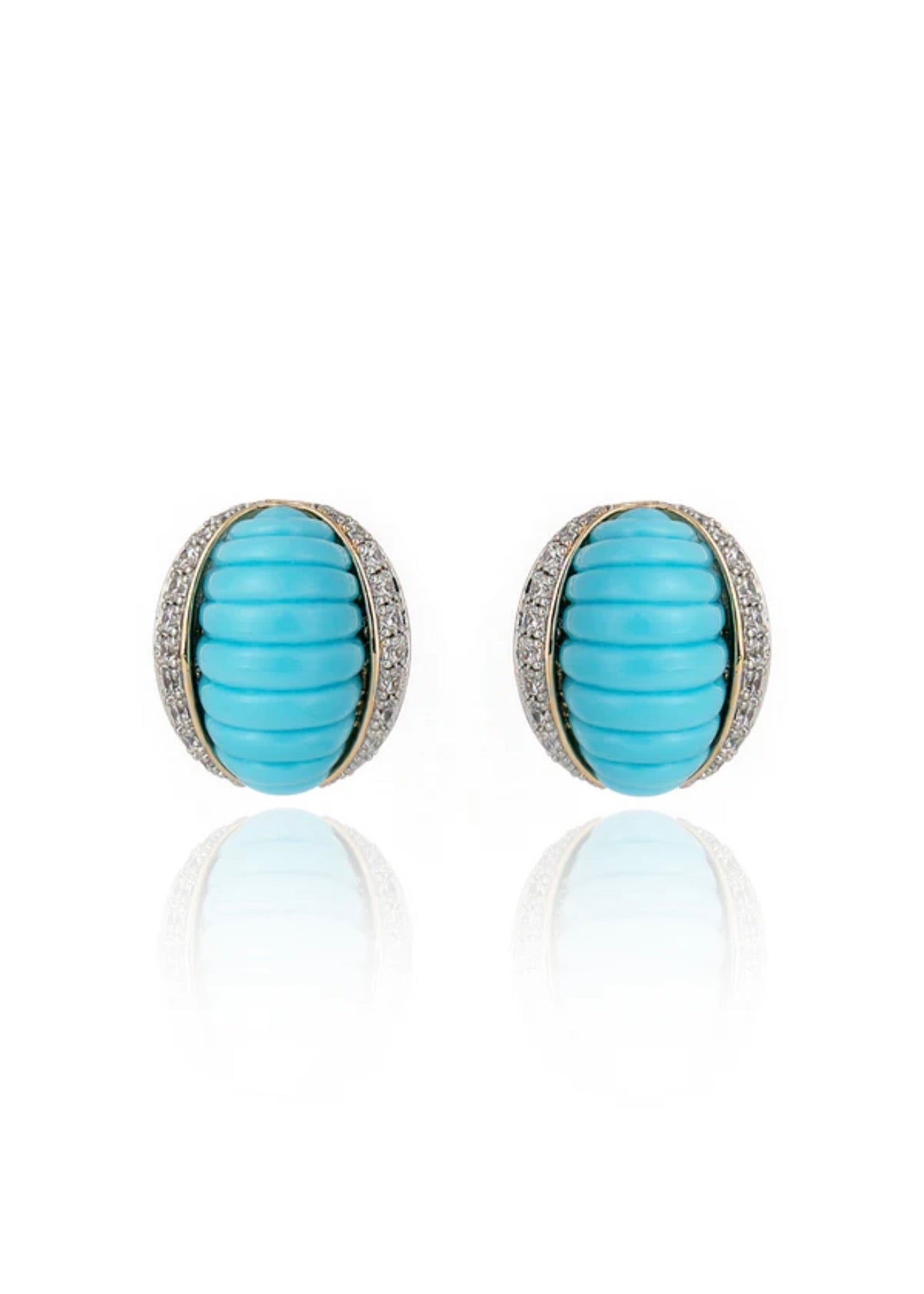 Bold yet refined, the Sogno Earrings capture the dreamy essence of Italian glamour. With sculpted turquoise resin cabochons encased in pavé-set zirconia borders, this luminous pair brings a vintage feel with a contemporary twist. Their rounded silhouette and radiant finish make them an instant statement—effortless, polished, unforgettable