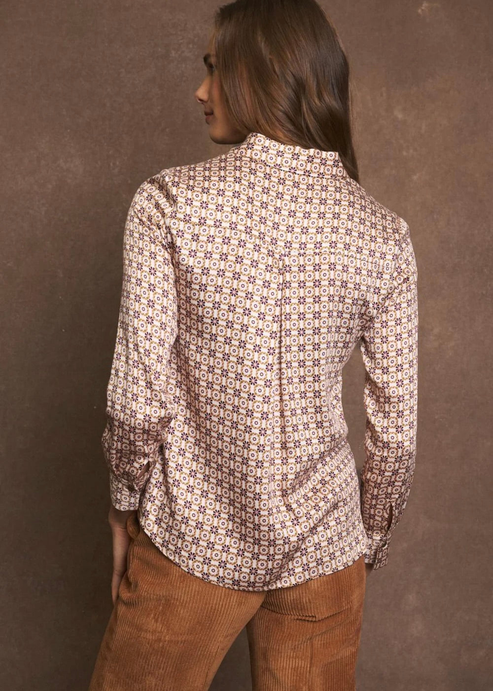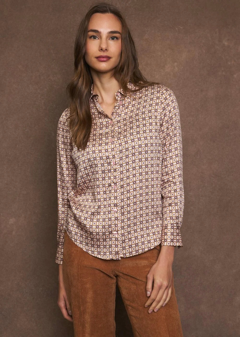 Elevate your everyday wardrobe with the Vida Top, a versatile printed shirt designed for effortless style. Featuring a classic collar and front button closure, this piece offers a relaxed straight silhouette that flatters any frame. Long sleeves finish with buttoned cuffs for a polished look, while the gently rounded hem adds subtle sophistication. Perfect for layering or wearing solo, the Vida Top transitions seamlessly from casual outings to professional settings, making it an essential addition to your closet