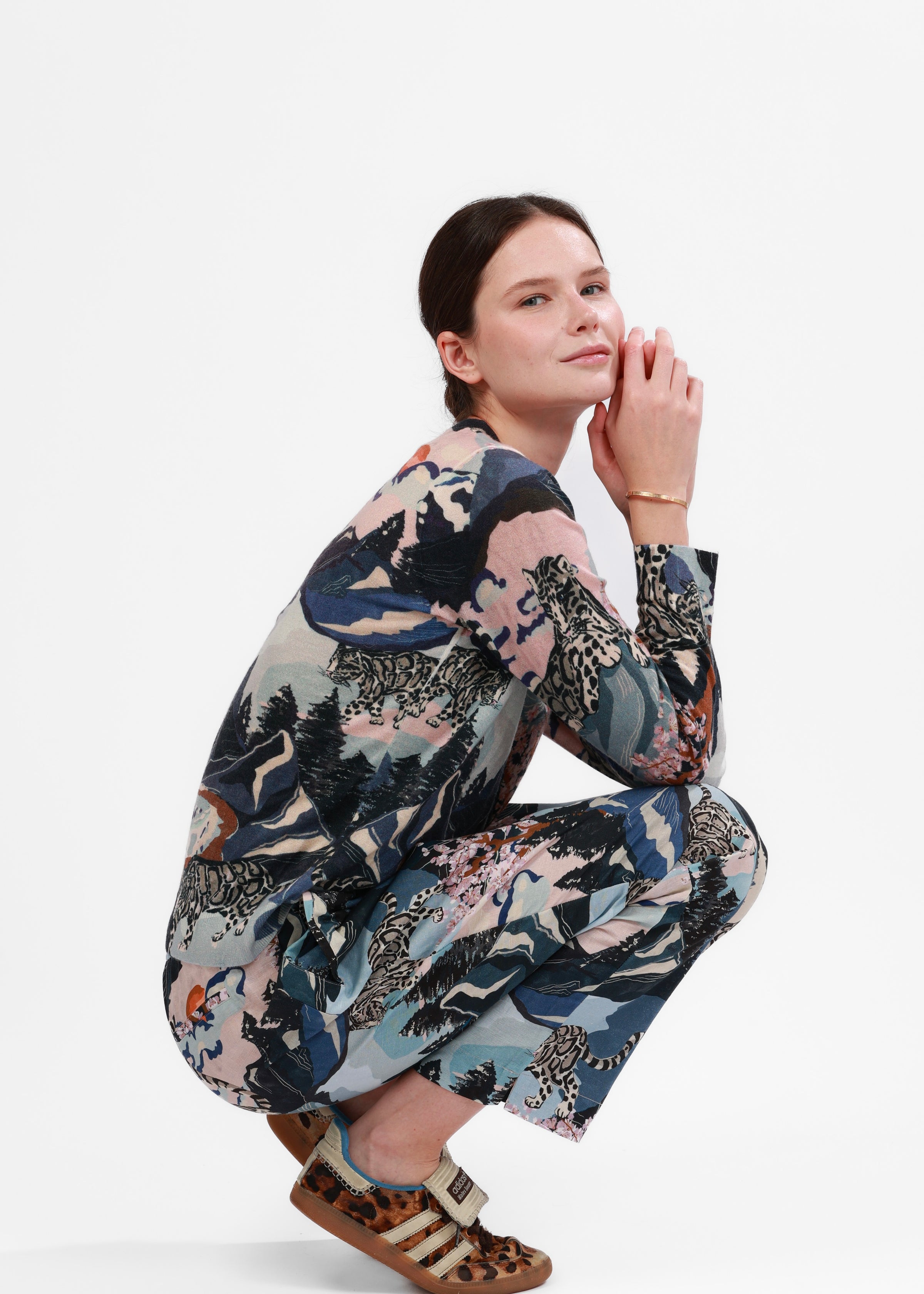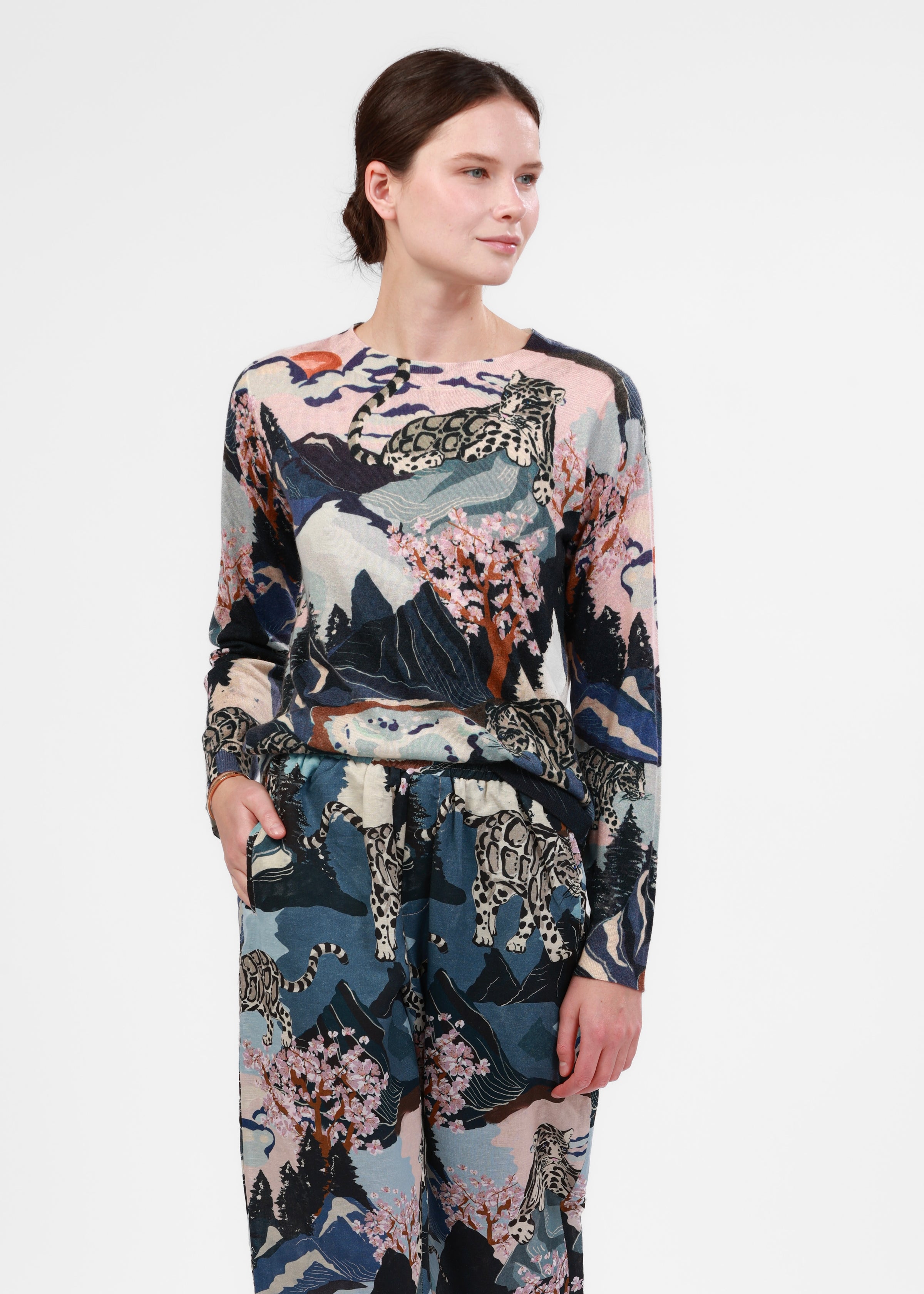 Wrap yourself in cozy luxury with the Akira Sweater. Its featherweight cashmere feels so soft and light, you’ll never want to take it off. The playful Snow Leopard Blue print adds a unique, wild twist to this long-sleeve, round-neck favorite — perfect for standing out while staying comfy all day