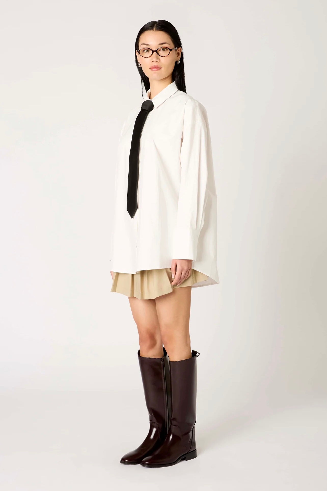 The Dahlia Shirt reinvents timeless style with effortless versatility. Its oversized silhouette and pointed collar deliver contemporary ease, while fold-pleated back detailing adds understated sophistication. Unlined and relaxed, this button-down adapts to your mood—wear it open over a tee, tucked for polish, or loose for laid-back charm. Long cuffed sleeves and generous room to move make it the go-to layer that works harder than it looks