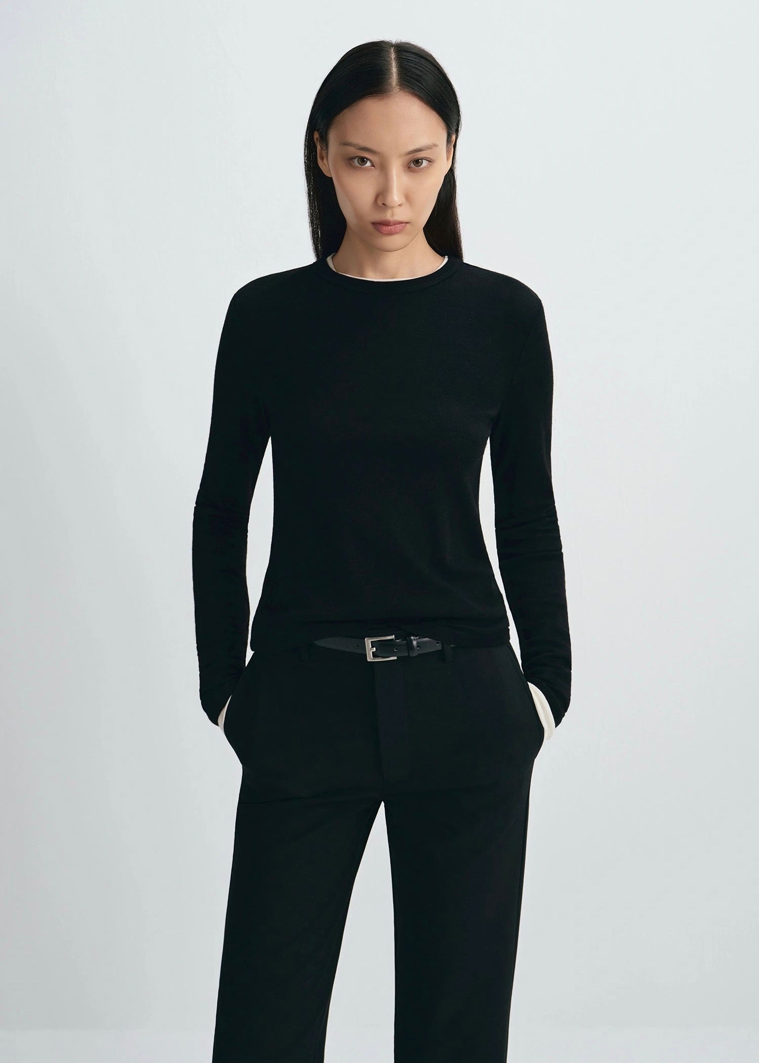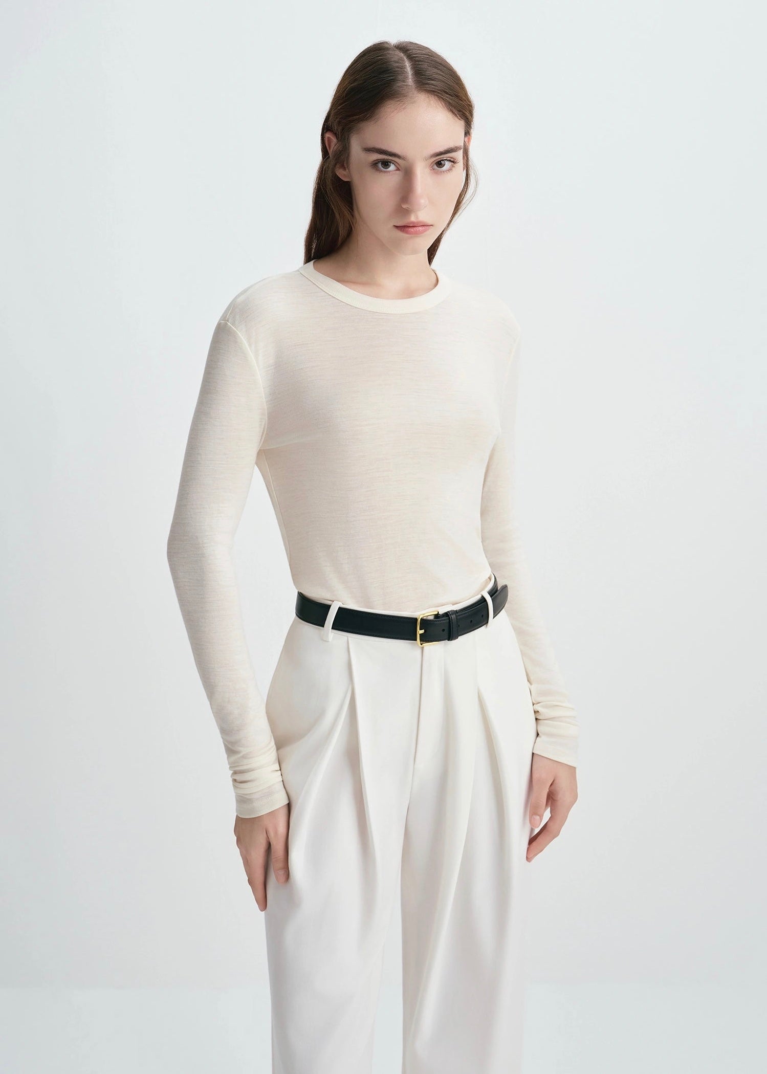 Cozy up in timeless style with the Jolene Top—a crew neck wool wonder that's equal parts sophisticated and snuggly. The fine knit finish and long sleeves deliver breathable warmth without the bulk, while the clean silhouette keeps things effortlessly chic. Perfect for layering or going solo, this modern essential proves that looking polished doesn't mean sacrificing comfort