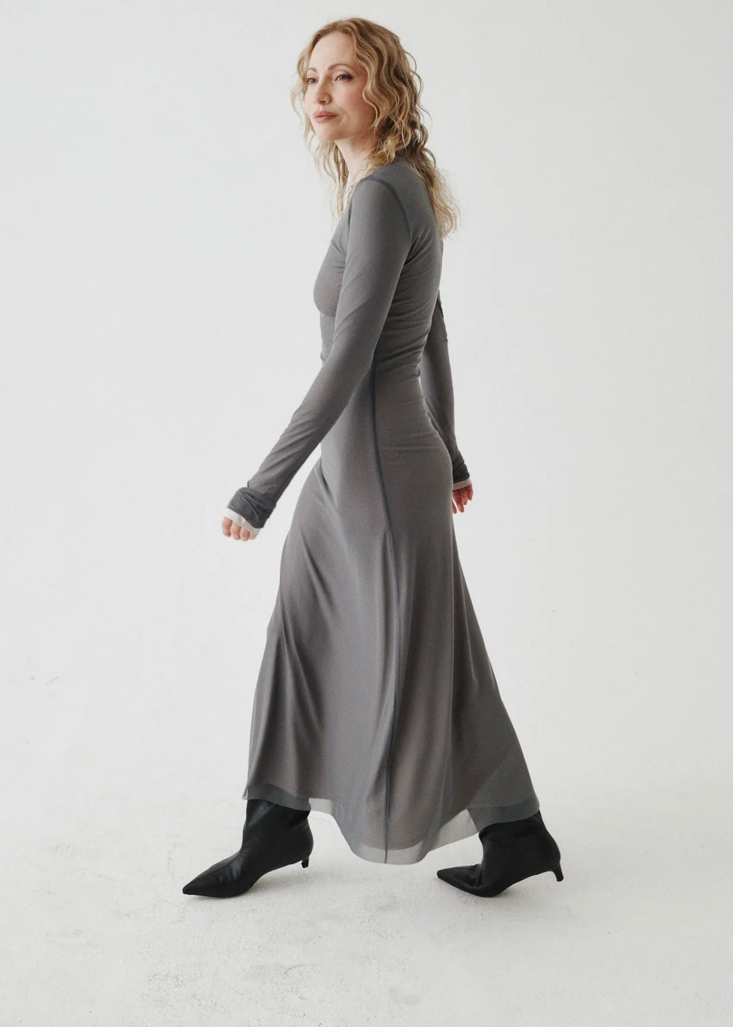 277TD807_CHARCOAL/DOVE_XS 10-Layered-Mesh-Dress