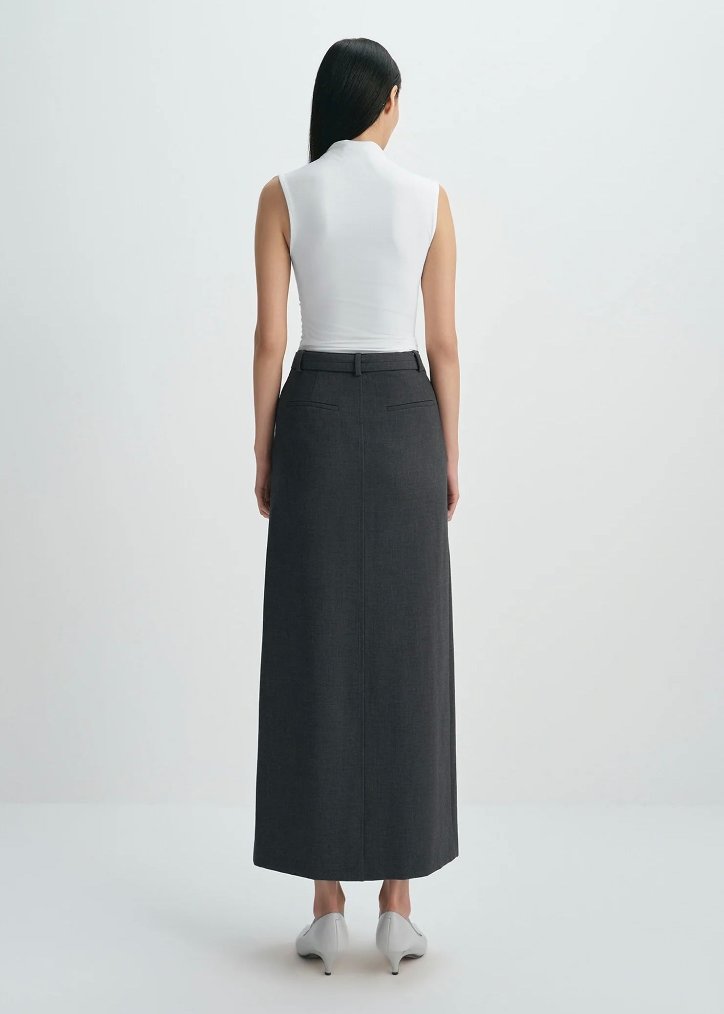 The Noelia Skirt combines sophisticated tailoring with contemporary ease. Crafted from a refined wool blend, this piece features a defined belted waist that creates a polished silhouette and a center slit for graceful movement. Perfect for transitional dressing, it effortlessly bridges professional and casual occasions, offering the structured elegance of classic design with modern versatility